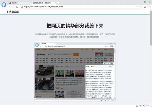 把网页中*感兴趣的部分裁剪下来。浏览器自动智能识别网页中的信息区块,你也可以手动调整,裁剪过程迅速、敏捷。裁剪下来的页面片段不会丢失页面的基本信息,如文字、图片和链接等。