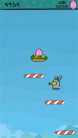 《涂鸦跳跃 复活节》是一款经典的休闲小游戏,游戏和前作涂鸦跳跃操作方法一样,依靠重力感应来控制跳蚤跳跃的方向,只要玩家踩到踏板上,那么小跳蚤就会继续往上跳,直到累计跳跃高度达到右上角所显示的终点高度,才可以拿到彩蛋并过关。